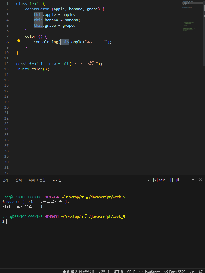4. 여기서 중요한건 constructor 함수를 사용하면 항상 같이 들어가야할것이 있다. 바로 " this "