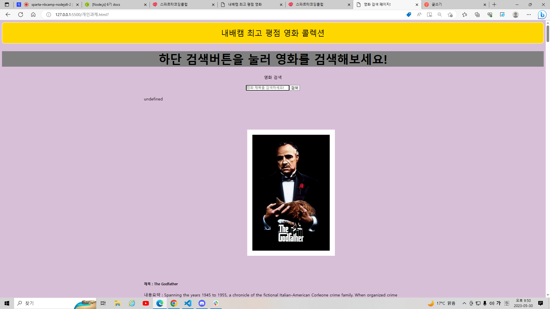 여기에 영화검색을 하면 그 영화가 검색되도록 기능을 넣으려고 했다.