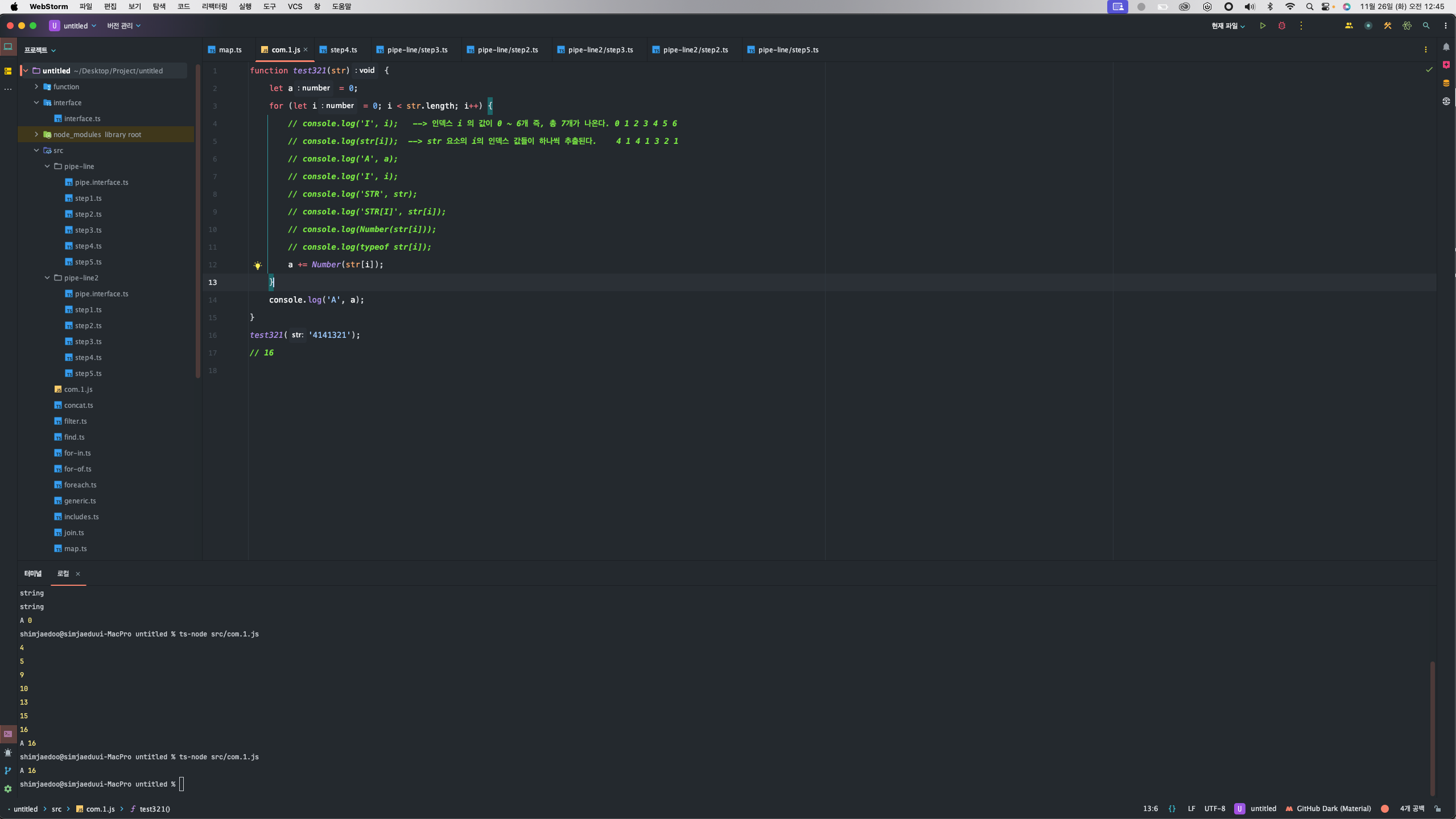 그래서 for문 안에 Number타입으로 str[i]를 감싸고 더해지니 원하는 16 의 값을 가지고 올 수 있었다.