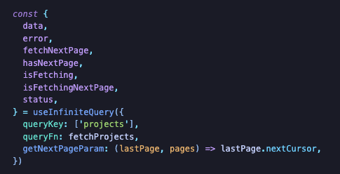 무한스크롤 기능을 구현하면서 문제가 있었던 부분을 남겨보려고 한다.우선 tanstack-query 공식문서에서 설명하는 useInfiniteQuery의 사용법은 위와 같다.그리고 나서 내가 구현하려고 했던 코드를 적어보면 아래와 같다. export const productQuery = { useGets : function() { return useInfiniteQuery, Error>({ queryKey: ["products"], queryFn: ({ pageParam = 1 }) => productApi.gets(String(pageParam)), getNextPageParam: (lastPage..